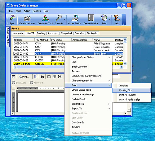 Just select an order from your Zoovy store and print the UPS packing slip: